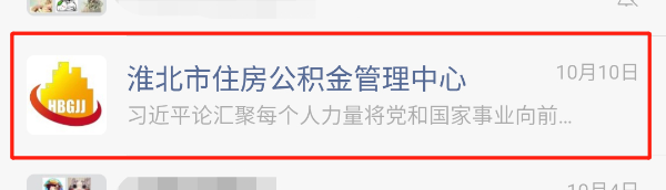 第一步:打开“淮北市住房公积金管理中心”微信公众号;