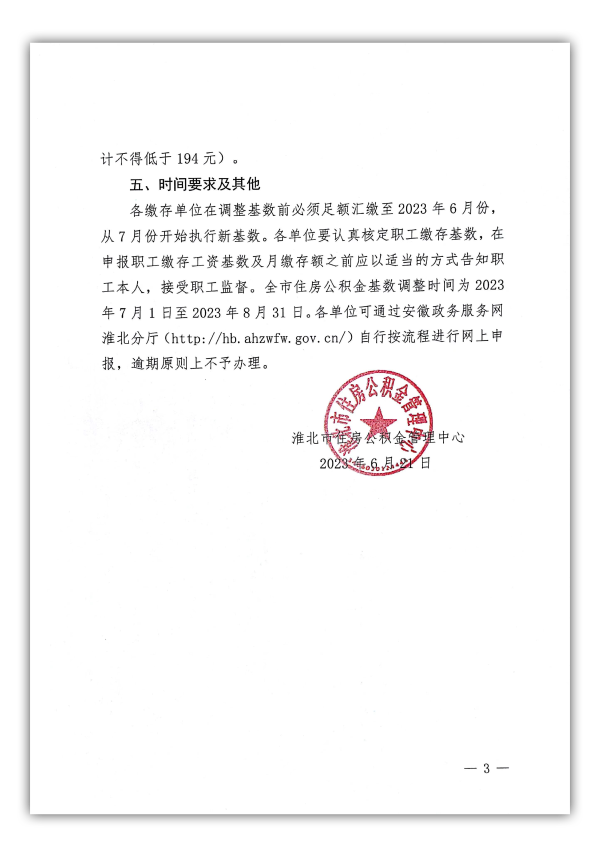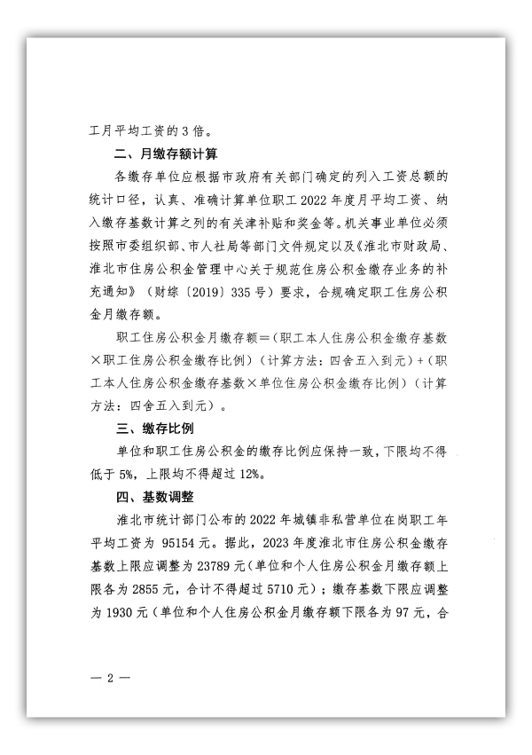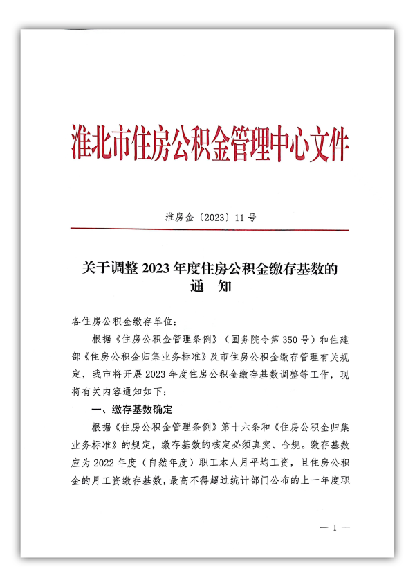 关于调整2023年度住房公积金缴存基数的通知(淮房金〔2023〕11号)