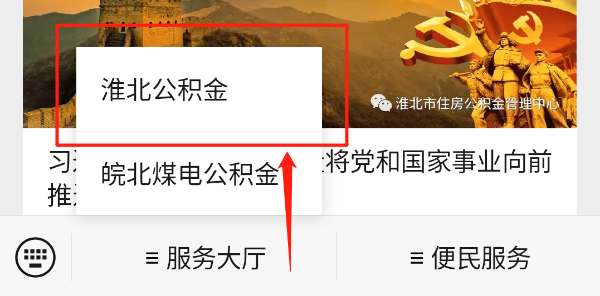 第一步:打开“淮北市住房公积金管理中心”微信公众号;