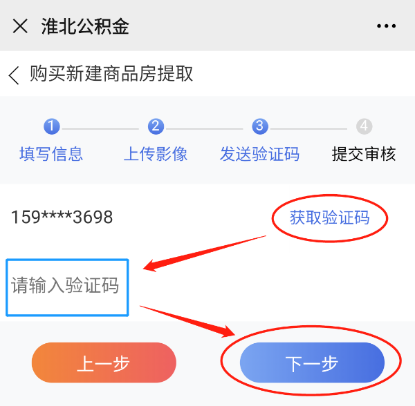 第七步:此时会向您账号绑定的手机号上发送短信验证码,点击“获取验证码”→输入验证码→“下一步”;