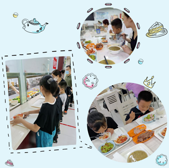 第四站,自助餐厅。玩耍过后,孩子们的肚子都唱起了“空城计”,在自助厅里孩子们东看看,这个好吃,来一份;西瞧瞧,那个也好吃,再来一份,不一会,餐盘就堆满了爱吃的食物,孩子们立刻狼吞虎咽地吃了起来,边吃边说真香啊……