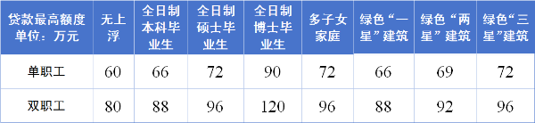 政策调整后,结合上浮机制,单职工和双职工住房公积金贷款最高额度分别达90万元和120万元,具体可见下表: