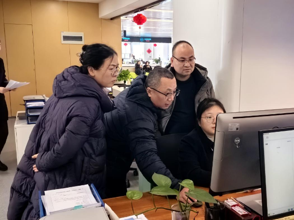 座谈会后,指导组实地调研了中心业务审批科及中心机房,现场观摩了高频业务办理流程、电子档案系统应用及网络安全基础设施运行情况,并就具体技术细节与一线工作人员进行了交流。